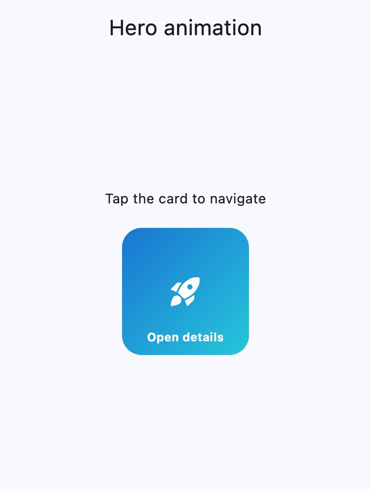 Place a Hero with the same tag in both source and destination views to animate that control between routes.