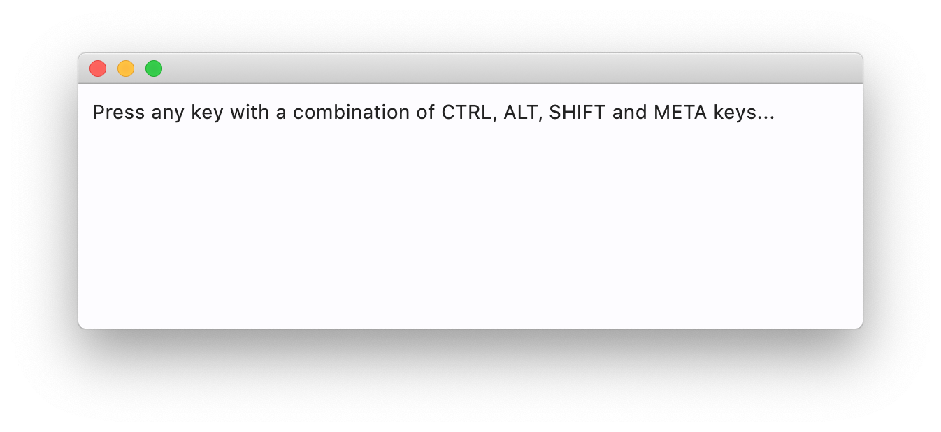 "Press any key with a combination of CTRL, ALT, SHIFT and META keys..."